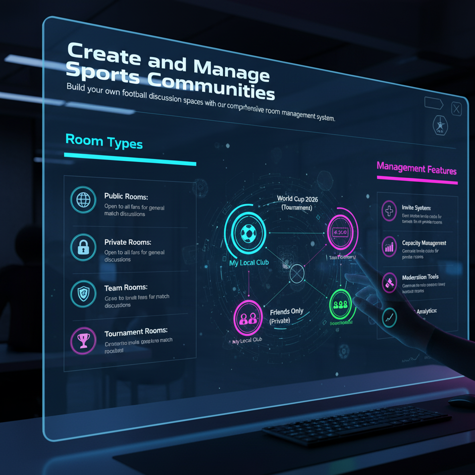 Build your own football discussion spaces with our comprehensive room management system.
